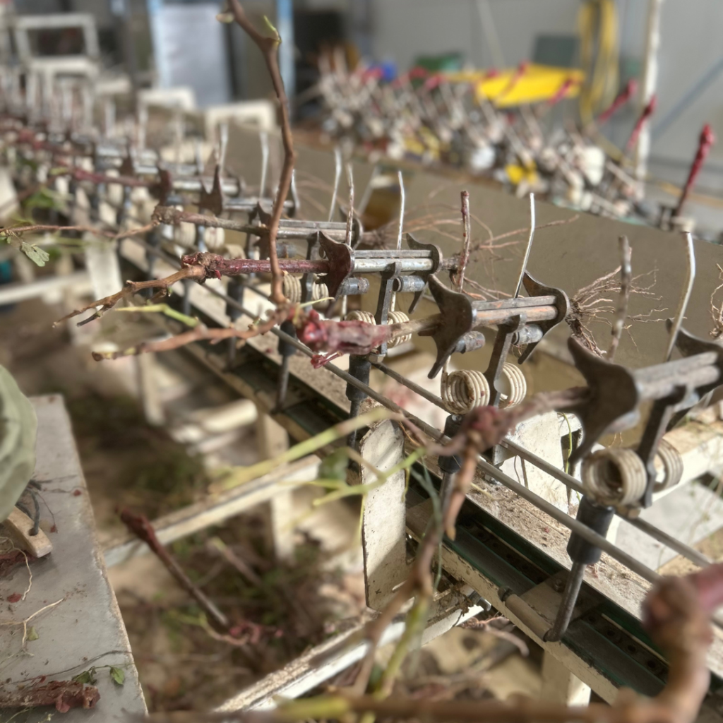 3. Tri et inspection : Une fois arrachés, les plants sont minutieusement triés. Ils sont inspectés pour garantir qu’ils répondent aux normes de qualité requises : des racines bien développées, une bonne fusion entre le greffon et le porte-greffe, et une vigueur générale satisfaisante.