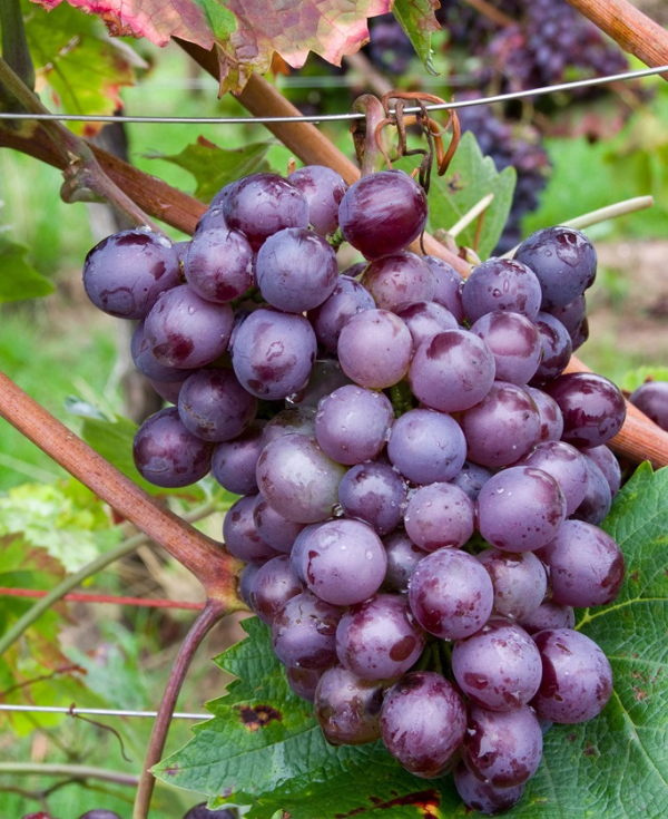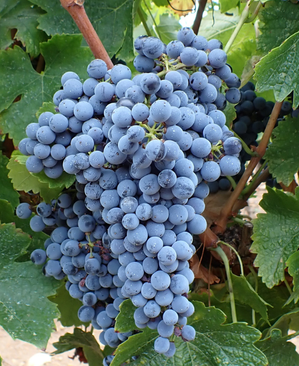 Le Mourvèdre est un cépage rouge à débourrement tardif et maturité tardive, avec des grappes moyennes à grosses et des baies petites à moyennes, à peau épaisse et fortement colorée. Vigoureux, il apporte structure, tanins puissants et arômes de fruits noirs et d’épices, et se plaît sur sols argilo-calcaires ou caillouteux bien exposés, souvent utilisé pour renforcer les assemblages méditerranéens.